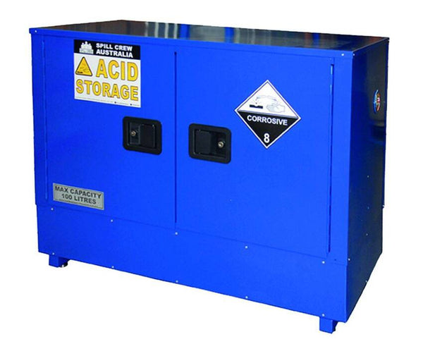 Stores Class 8 Corrosive substances,Two sequential self closing doors.Ventilation ports with flash arrestors each side.Double wall thermal barrier with 40mm spacing.Integral Spill Containment sump with drain and suspended perforated floor.