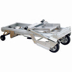 Aluminum load lifter can be tipped back and maneuvered on two wheels like a hand truck, and easily fits through standard doorways.