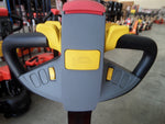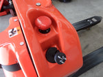 This electric pallet jack has 1800 kg capacity, good for use on a large truck to move items or pallets. It’s power moving and lifting.
