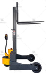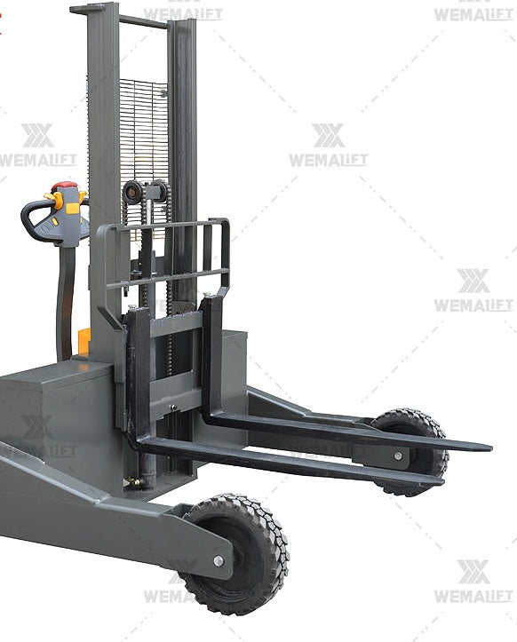 This is an all-terrain outdoor electric pallet stacker, with a sturdy and stable structural design.It is suitable for rough outdoor surfaces such as construction sites and muddy areas.