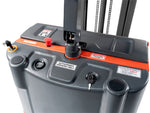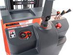 High ground clearance and large load wheels for comfortable travel on uneven ground. No license required to operate Single phase in-built intelligent charger ensures comfortable and reliable charging at any standard single phase wall socket. Slow and fast drive speed switch, Belly button reversing switch Reach and tilt function, micro switch and power steering; Free lifting until 1.5m Ergonomically designed butterfly-type speed control allow users to operate this series using the forward and reverse butterfly control for precise manoeuvring and easy access of the lift/ lower functions for both left and right handed operators.