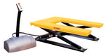 These Electric Scissor Lift tables uses a control box with UP and DOWN button, EMERGENCY STOP. External power pack equipped with a relief valve against overloading and compensated flow valve for control lowering speed and achieve a low close height, eliminating the need for a pit installation. Upper platform filled with safety perimeter to prevent descent on contact with obstructions.