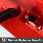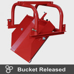 Spring loaded latch locks, lifts, dumps & resets all from your tractor seat.