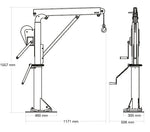 A hand winch is low-geared to ensure loads of up to 500 kg can be easily raised, while precise positioning of the load is achieved through geared hand-slewing of the mast.