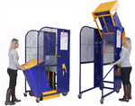 A lift-and-tilt crank handle operated unit for lifting and tipping wheelie bins into skip bins.Suitable for schools, factories, retail outlets and offices.