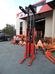 These semi auto fork stackers are the ideal machine for any warehouse. They are manual push and electric up/down with handle-chain assisted steering which greatly reduces operator labour intensity. This unit legs will not get inside closed pallets and will not go over the timber under pallet.