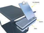 Optional clipboard clamps onto all trolleys powdercoated silver Bull Clip & Pen Rack |