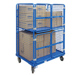 An extremely versatile goods cage with the space saving benefit of being able to be collapsed easily for storage when not in use. Fitted with a fold up upper shelf and 270 degree opening lockable gates, this cage can be used in a single or a two shelf configuration.